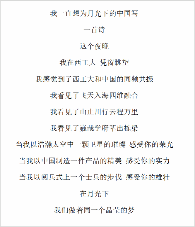 为深入学习贯彻党的二十大精神,号召广大青年踔厉奋发,勇毅前行,以青春之我创造青春之中国。2022年11月,由共青团西北工业大学委员会主办,3044am永利集团团工委和力学与土木建筑学院团委共同承办的“青春誓言献给党”视频征集活动取得圆满成功。西北工业大学学子积极参与了本次活动,通过平台喊出了自己的青春誓言,内容丰富,感情真挚。