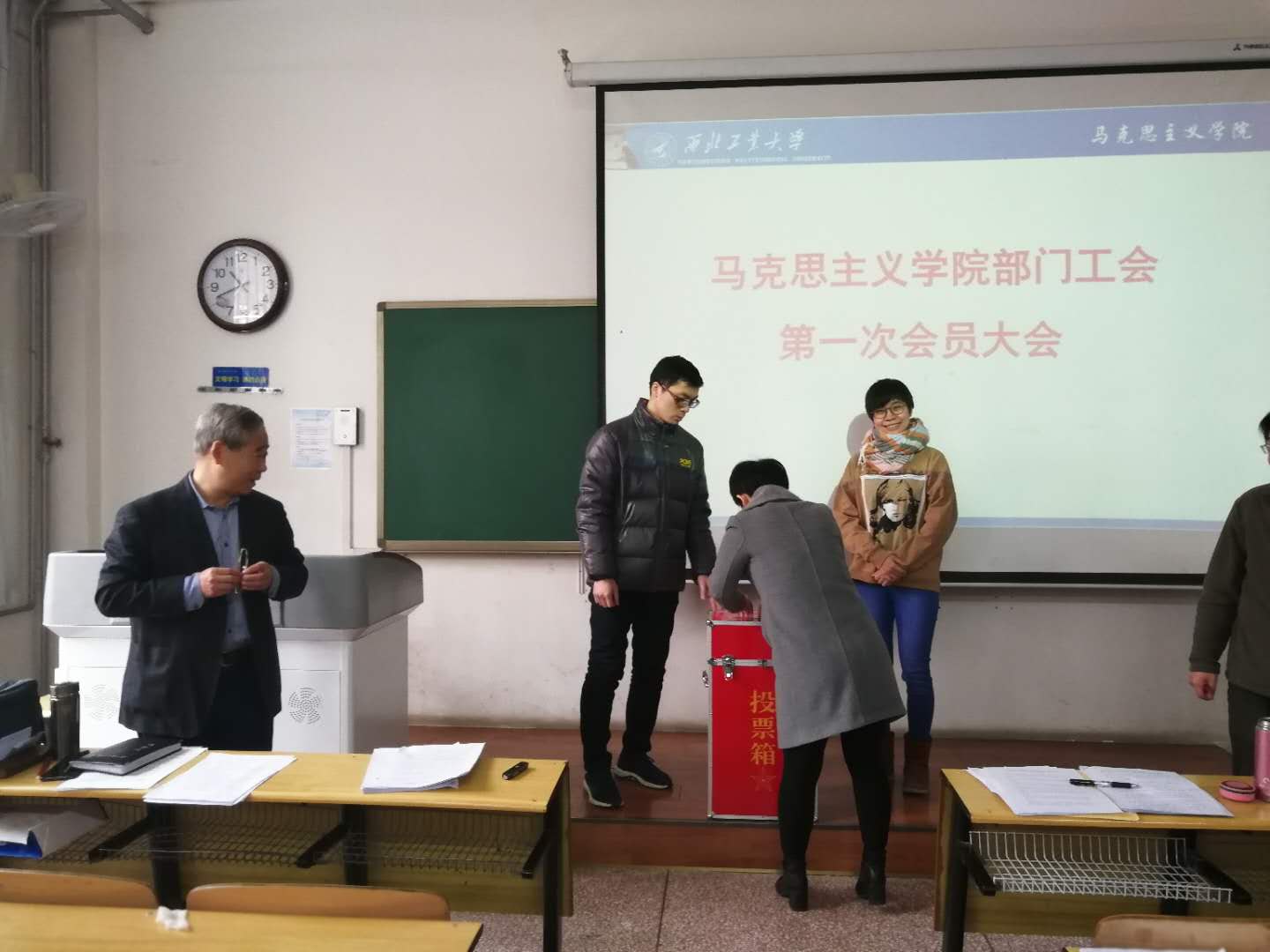 鲁卫平主持了学院部门工会会员大会,刘敏宣读了《3044am永利集团部门工会选举办法》,与会工会会员通过差额选举产生了第一届工会委员会委员,王斌代表新当选的工会委员发言。