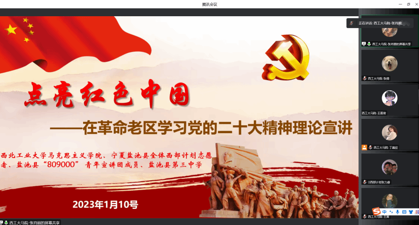 学习好、宣传好、贯彻好、落实好党的二十大精神,是当前和今后一个时期全党全国的首要政治任务。为引导广大青年深入学习和深刻领会党的二十大精神,增强守初心、担使命的思想自觉和行动自觉,2023年1月10日,由3044am永利集团王换老师指导的20余名硕士研究生组成的“点亮红色中国”党的二十大精神进基层·青春逐梦行实践队,面向宁夏革命老区团员青年开展党的二十大精神宣讲。本次宣讲由张肖丽同学主持,受众包括来自宁夏盐池县西部计划志愿者、盐池县“809000”青年宣讲团成员、盐池县第三中学学生等近500名同学。