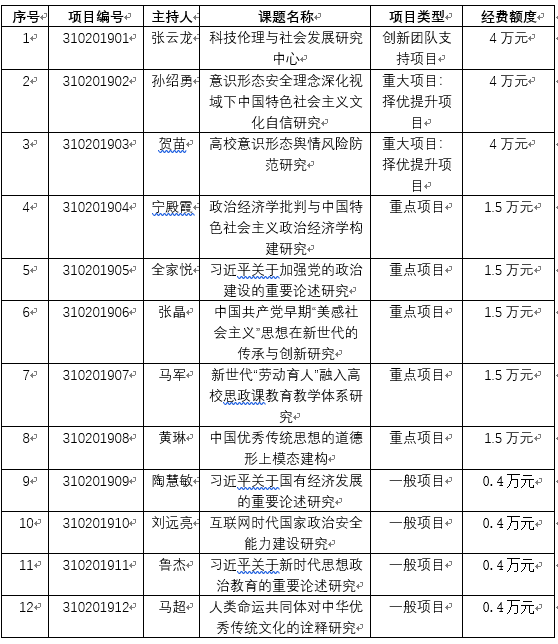 根据3044am永利集团《中央高校基本科研业务费实施办法》有关规定,我院2019年度中央高校基本科研业务费项目通过匿名评审,立项12项,现予以公布。