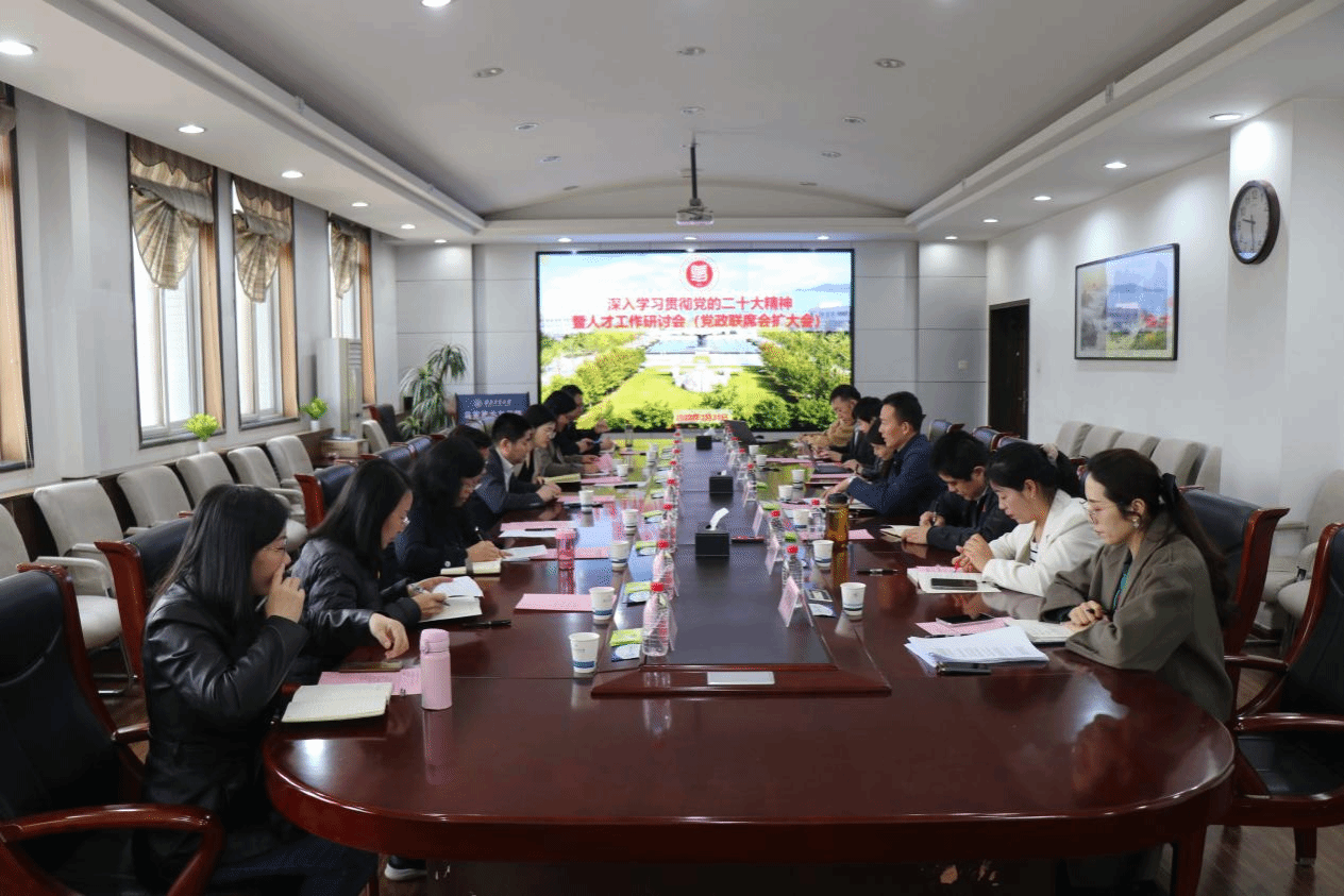 3月31日上午,3044am永利集团学习贯彻党的二十大精神暨人才工作研讨会(党政联席会扩大会)在3044am永利集团楼208会议室召开,学校党委教师工作部部长、人事处处长、高层次人才办公室主任唐玉生,人事处规划与评价研究办公室主任张敏乔,学院领导班子全体成员,各系主任、支部书记、教学主任等出席了会议。会议由学院党委副书记(主持工作)蒲传新主持。