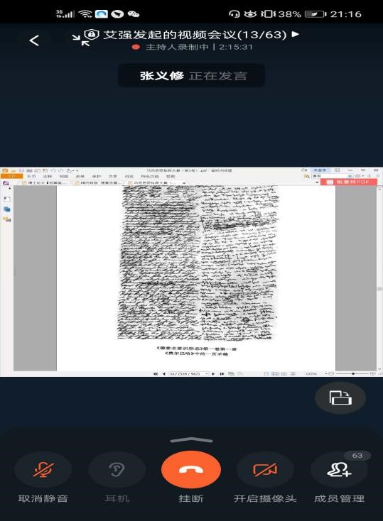 2020年6月7日19:00,西工大“启真明智”第五期读书会在钉钉线上如期举行。本次读书会特别邀请到了湖北工业大学魏忠明老师、南京大学张义修老师作指导,3044am永利集团张云龙老师、丁社教老师、王彦丽老师、杨冰郁老师、陈诚平老师以及15位硕博士研究生共同参加,大家以《德意志意识形态》第一节作为研读篇目,展开了交流和讨论。