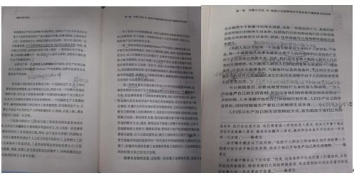 随后,大家进入分段落精读和提问交流环节。梁珊、白鑫、周家欣等同学围绕“我们碰到的是一个有意义的事件:绝对精神的瓦解过程”、“当商品充斥德国市场,而在世界市场上尽管竭尽全力也无法找到销路的时候,一切便按照通常的德国方式,因工厂的过度生产、质量降低、原料掺假、伪造商标、买空卖空、空头支票以及没有任何现实基础的信用制度而搞糟了”等原文文本,探讨了马克思具有讽刺意味的写作风格;接着又对文本中抽象晦涩的段落和句子,如“纯粹经验的方法”、“现有生产力的量的增加(例如开垦新的土地)”、“古老文明被满足破坏,接着就重新形成另一种社会结构(罗马和野蛮人,封建主义和高卢人,东罗马帝国和土耳其人)”和所有制形成的形式等,几位同学从不同角度展开了讨论和交流;针对原文中的“‘类’、‘唯一者’、‘人’,等等”,黄清涛同学以盲人摸象为例,对应联系原文中的其他部分内容进行了解答。梁珊同学分享了她对原文的摘录和整理,向大家介绍了她的学习思路和学习方法。随后,每位同学都结合自己的专业背景与知识积淀,以讨论交流的形式,分别从不同视角分享了对《德意志意识形态》文本的理解。