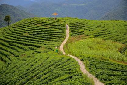 继续沿着山路前行,实践队员经过了习近平总书记在园区考察时进行工作指导的区域,实践队员注意到,茶园中有“人不负青山,青山定不负人”、“因茶致富、因茶兴业,脱贫奔小康”等标牌,驻村干部很自豪地说,这是习近平总书记在考察时,向蒋家坪村村民强调的致富之道。这句话如今已经印在了每一个茶农的心里,鼓励着他们发展好茶业,并提醒着他们保护这得天独厚的自然环境。