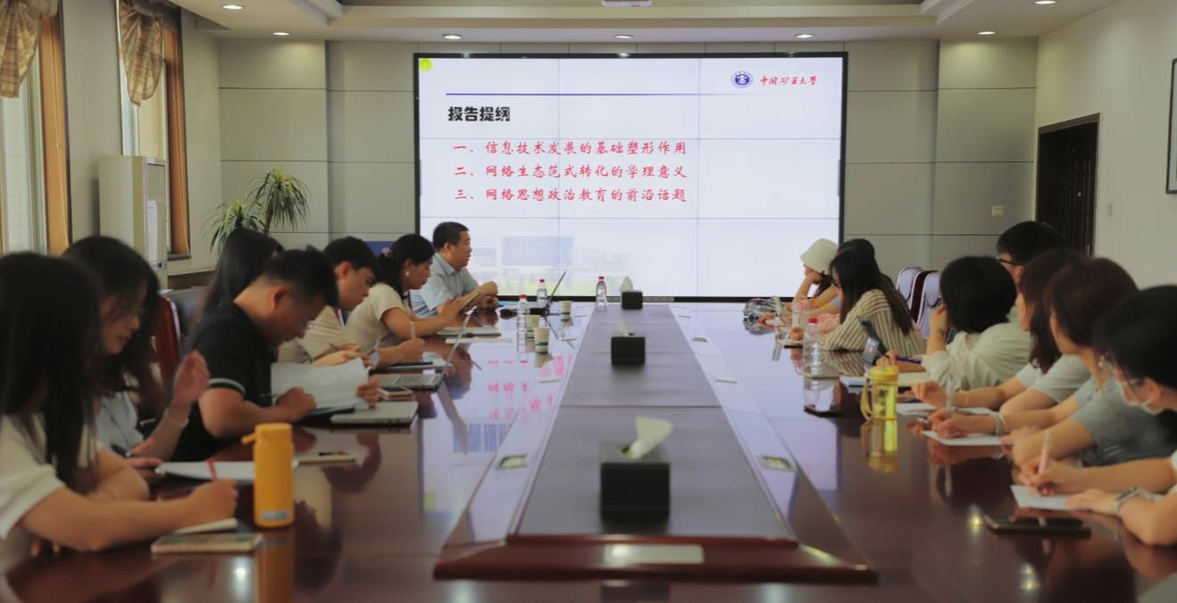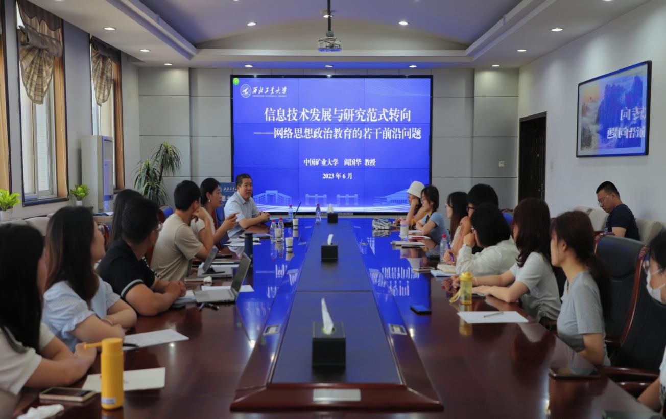 2023年6月21日上午,中国矿业大学3044am永利集团党委书记、讲席教授阎国华做客我校“翱翔人文讲堂”,在3044am永利集团208会议室为师生们带来一场主题为《信息技术发展与研究范式转向--网络思想政治教育的若干前沿问题》的精彩讲座。