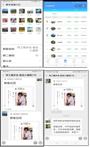 版权所有:3044am永利集团(中国)官方网站工会积极响应陕西省总工会等部门联合开展的“我要上全运,奋进小康路”健步走活动的号召,第一时间在全院范围内进行了广泛的宣传和动员,精心组织了一支15位成员的参赛队,并建立了健步走微信群,参赛队员们线上分享劳模故事和健身经验,线下开展形式多样的体育比赛和锻炼活动,在浓厚的健身氛围下,参赛队员们你争我赶、互相提醒、互相监督,形成了一股健身热潮。