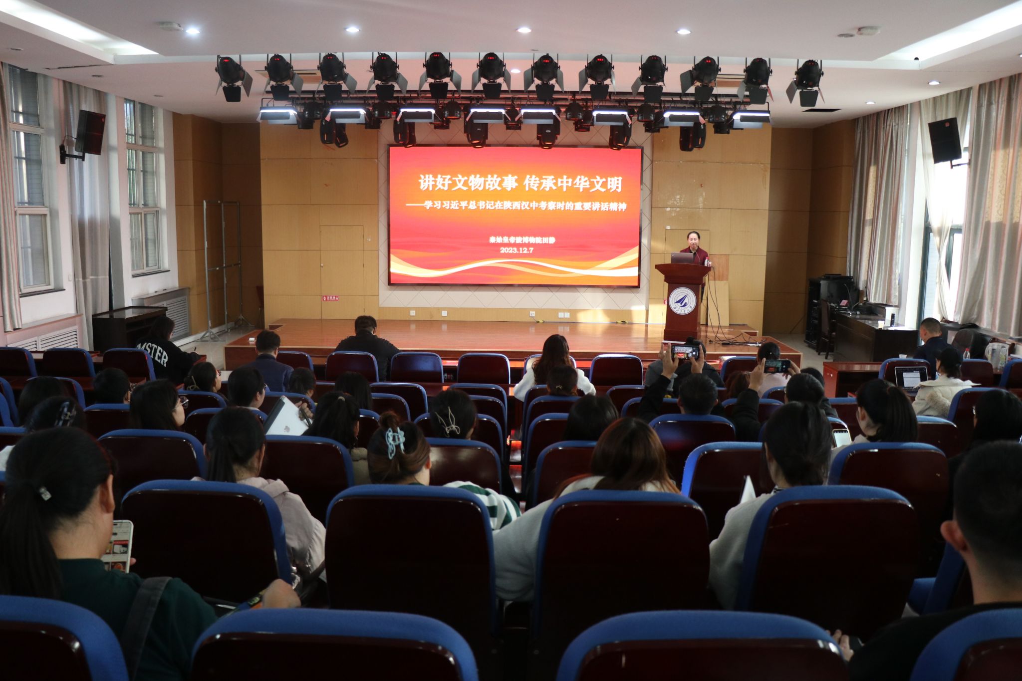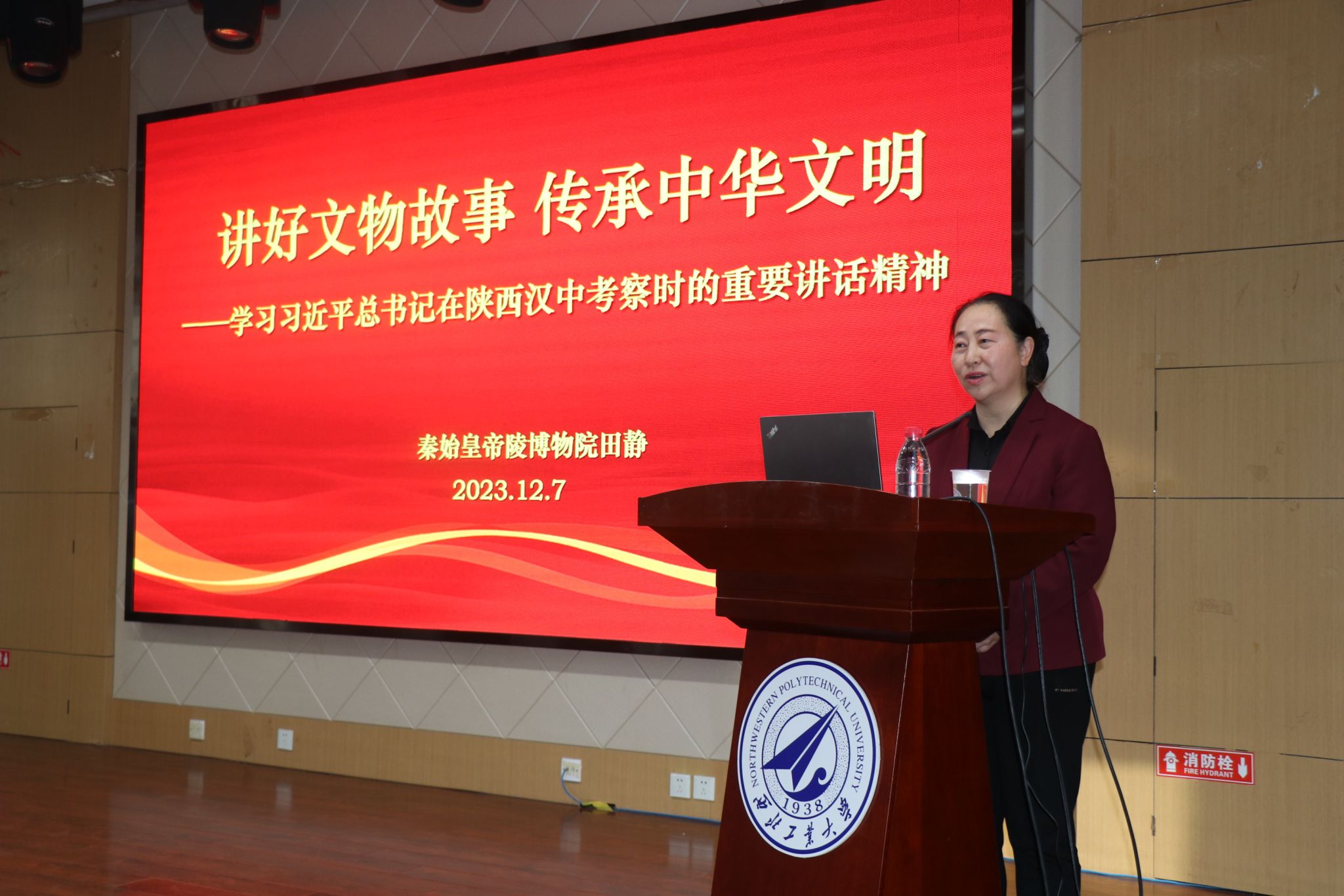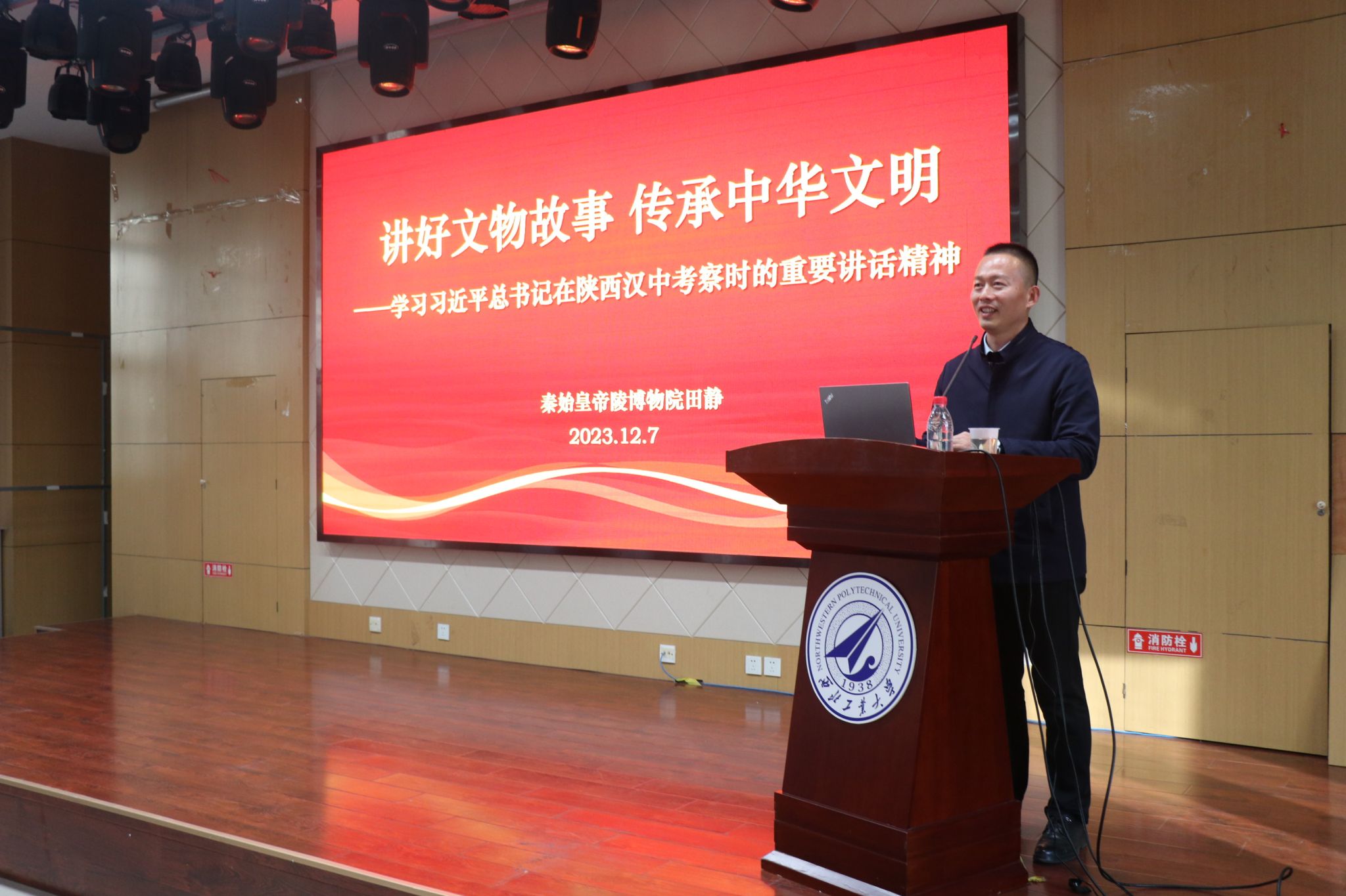 12月7日,秦始皇帝陵博物院副院长田静应邀作客我校“翱翔人文讲堂”,为学校师生带来了一场题为《讲好文物故事 传承中华文明——学习习近平总书记在陕西汉中考察时的重要讲话精神》的专题讲座。本次翱翔人文讲堂由西北工业大学党委学生工作部主办,3044am永利集团承办,讲座由3044am永利集团党委书记蒲传新主持。