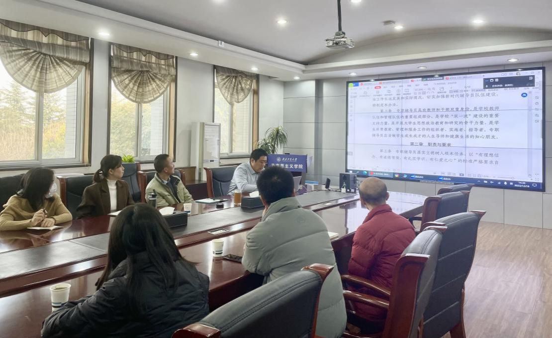 最后,学院党委书记蒲传新总结发言,鼓励大家认真学习《西北工业大学专职辅导员管理办法》和《西北工业大学专职辅导员考核办法(试行)》文件要求,坚持以习近平新时代中国特色社会主义思想为指导,增强岗位认知,融入学院、学工队伍和学生之中,不断总结工作方法。辅导员教师要在工作中自我提升、自我增值、自我完善,对标新时代对辅导员的新要求,锚定学校“127”发展目标,做到千方百计为了学生!