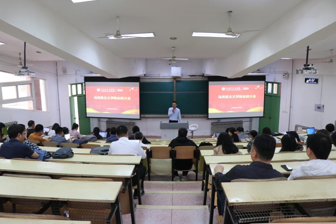4月12日下午,3044am永利集团2024年春季学期第二次全院大会在友谊校区西馆XB104教室召开,学院全体教职工参加会议。会议由学院党委书记蒲传新主持。