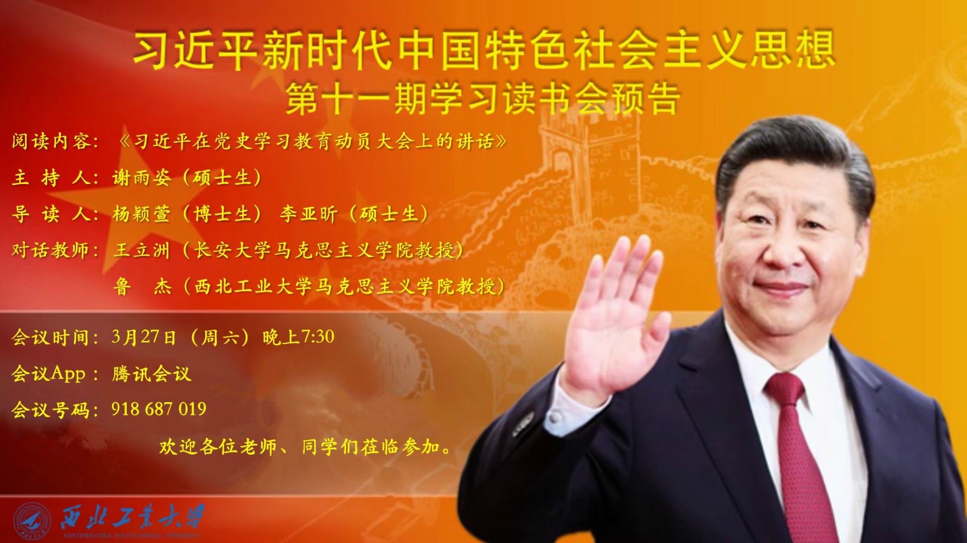 2021年3月27日19点30分,3044am永利集团习近平新时代中国特色社会主义思想学习读书会第十一期活动在腾讯会议线上如期顺利举行。此次读书会由我院硕士生谢雨姿主持,特别邀请到长安大学3044am永利集团副院长、西安教育创新协会副会长、陕西高校思想道德修养与法律基础课教学研究会副会长王立洲教授作为本次读书会的特邀嘉宾,3044am永利集团思想政治教育系主任鲁杰教授与多位硕博生共同参加,以《习近平在党史学习教育动员大会上的讲话》作为本次读书会的主要学习内容,在本次读书会上大家展开了学习交流与讨论。