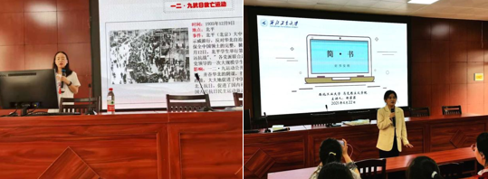 之后,硕士生党支部书记王慧新对送讲党课和团课的情况进行了详细地介绍。为了让青少年在学习中厚植爱党爱国情怀,传承革命红色基因,3044am永利集团党史理论宣讲团为民族中学提供线上党史送讲活动,党史送讲共计10课时。