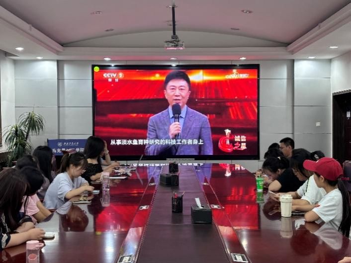 榜样力量,感悟诚信。随后,团员们共同观看了“诚信之星”金万昆的纪录片。金万昆怀着“为国家选一辈子苗”的赤诚之心,坚守鱼类育种领域60余年,用一生践行了与原国家水产部领导“做鱼”的承诺。他以实际行动诠释了诚实守信、以诚立身的精神风貌,让团员们深受触动,更加坚定了践行诚信的决心。