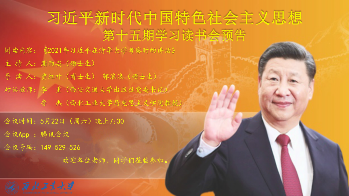 为深入学习贯彻习近平总书记在清华大学考察时的重要讲话精神,贯彻落实全国研究生教育会议精神,推进习近平新时代中国特色社会主义思想进教材、进课堂、进头脑。2021年5月22日,3044am永利集团习近平新时代中国特色社会主义思想学习读书会第十五期活动主题围绕《2021年习近平在清华大学考察时的讲话》进行学习研讨。本次读书会由我院思想政治教育系主任、博士生导师鲁杰教授发起,学院硕士生谢雨姿主持,特邀请到西安交通大学出版社党委书记、宣传部副部长、西迁精神研究中心副主任李重参与指导。