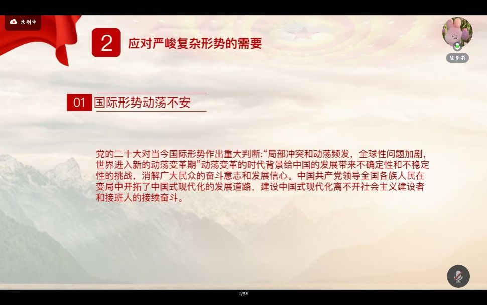 在导读环节圆满结束后,张智教授对两位同学的精彩发言给予了高度认可。紧接着,他深入分享了如何深刻思考并理解习近平总书记的重要讲话,为我们提供了一个全面而深入的解析框架。张教授首先指出,要深入思考习近平总书记为何选择特定时机召开会议,阐述“两个结合”等理念,这背后蕴含着深刻的时代背景,是我们理解重要讲话精神的关键所在。其次,广泛阅读并深入研究学者们的论文与文献至关重要。再者,深入理解习近平总书记重要讲话的背景与出处是不可或缺的一环。最后,他指出在回应和解读重要讲话内容时,我们需要分层次、有条理地进行论证。通过这样系统性地分析,我们能够更全面、更深入地理解习近平总书记的重要讲话精神,并将其转化为推动社会进步的实际行动。