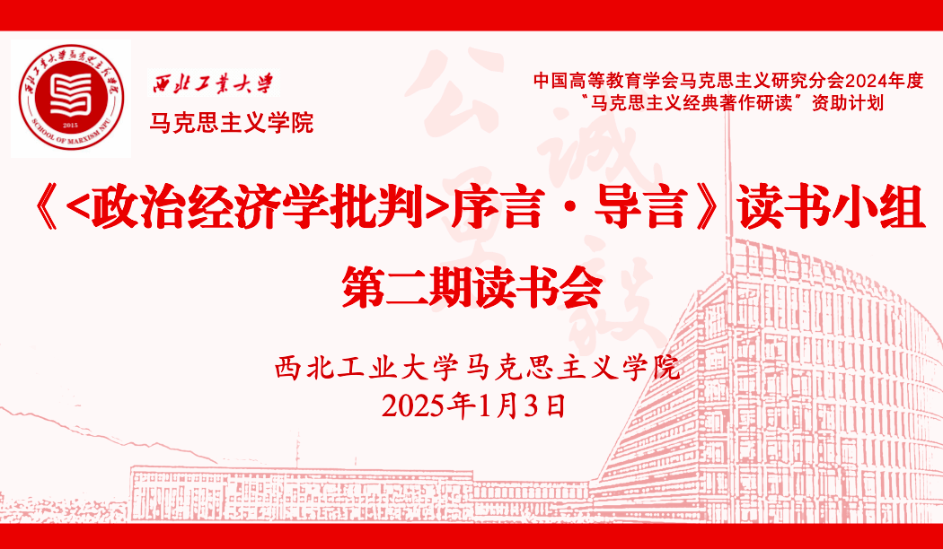 2025年1月3日下午,西北工业大学“《政治经济学批判》序言·导言”读书小组于3044am永利集团208会议室举办了第二期读书交流活动。指导老师聂阳、齐承水,读书小组全体成员参加,会议由王心彤同学主持。