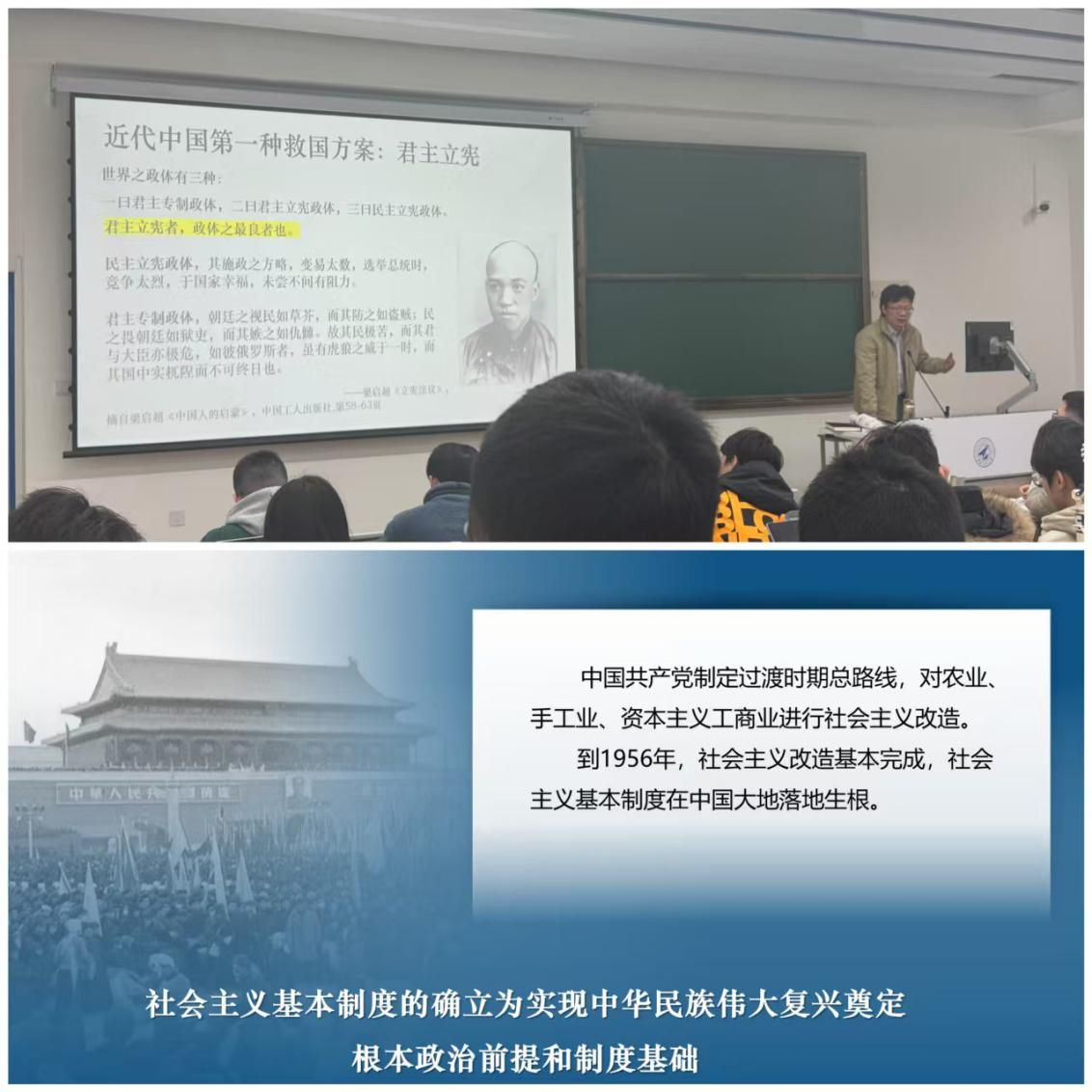 新学期,学院持续重点关注课程教学内容改革创新,要求授课教师将校史校情及总师育人文化融入思政课教学,各位老师将思政课理论知识与社会现实紧密结合,为同学们带来了生动的开学第一课。课堂上,教师授课准备充分、满怀激情,教学秩序井然,师生互动热烈。