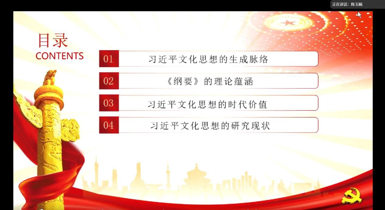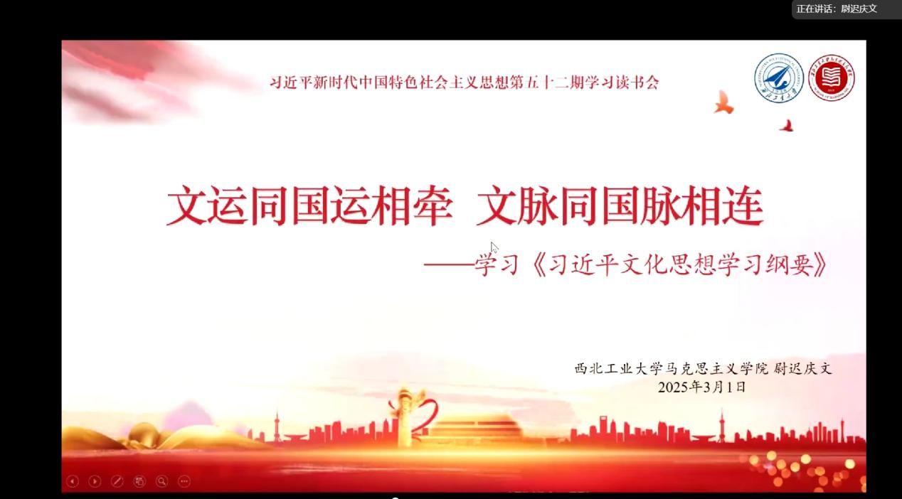 2025年3月1日,3044am永利集团习近平新时代中国特色社会主义思想学习读书会第五十二期活动以《习近平文化思想学习纲要》为主题进行学习研讨。本次读书会由3044am永利集团鲁杰思政课工作室主办,中国科学技术大学魏荣教授作为对话教师,硕士生李红霞同学主持,通过线上交流的形式,为广大师生们提供了一个思想交流、深入学习、智慧碰撞的平台。