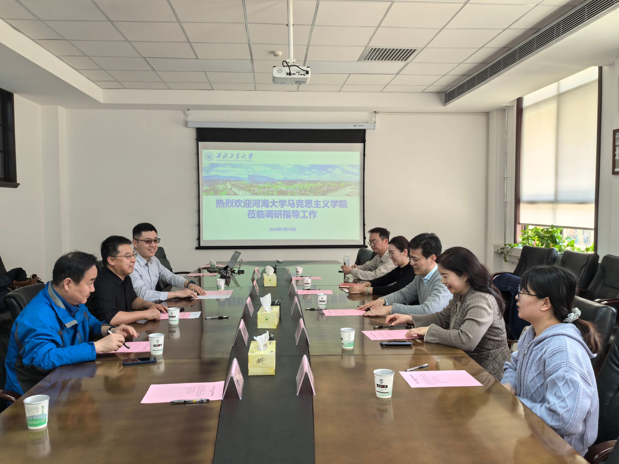 3月10日下午,河海大学3044am永利集团党委书记黄世虎,学院党委副书记、副院长李宁,团委书记、研究生辅导员张洁,本科生辅导员曹岩、李祥一行来学院调研。学院党委书记王彦革、副院长张云龙、学院党委副书记耿云辉、思想政治教育系教授姚崇、学工主管刘敏参加了此次调研会。会议由王彦革主持。