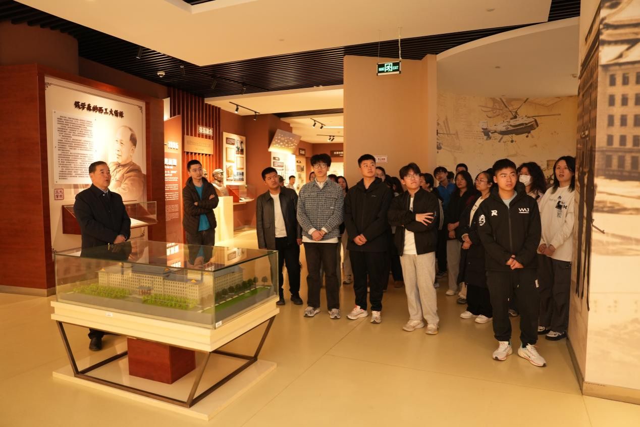 外国语学院杨欣冉:今天在陈老师的带领下,我深刻领悟了西工大以“教育救国、航空报国、军工强国”的重要性,目睹了学校从抗日战争时期的艰难办学到如今“国防七子”的辉煌历程。校史馆通过展板、实物模型、校史文物等多元展陈,让我能直观感受到学校与国家命运的同频共振,作为老一辈西工人将毕生精力投入国防科研,打破国外技术垄断,对这种“把一切献给党”的军工精神感到震撼与骄傲,深刻体会到个人理想与民族复兴的紧密联系,激发“强国有我”的使命感。