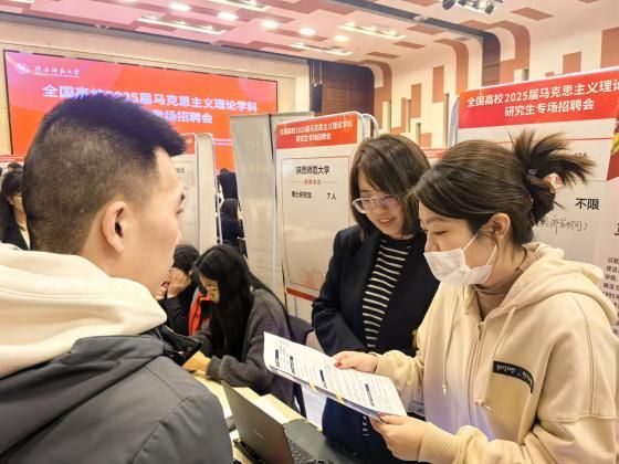为全力以赴促进2025届毕业生高质量充分就业,由陕西师范大学招生就业处主办,陕西师范大学3044am永利集团承办,我校与西安交通大学、西北农林科技大学、西安电子科技大学、长安大学、西北大学等高校3044am永利集团共同联办的“全国高校2025届马克思主义理论学科研究生专场招聘会”于2025年3月8日在陕西师范大学长安校区举办。我校3044am永利集团参加了此次专场招聘会。