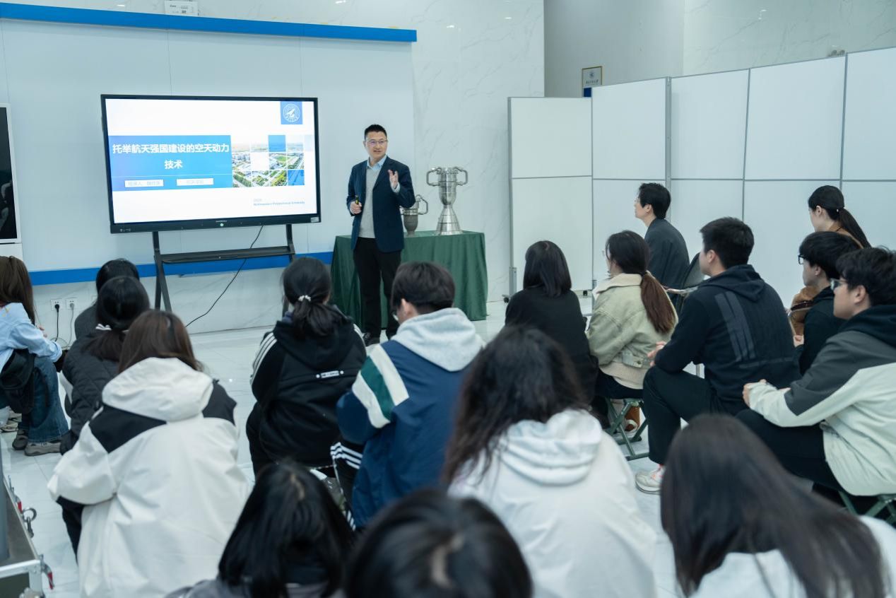 魏教授主要从事液体火箭发动机技术、冲压组合发动机技术及火箭发动机推力调节技术等方面的研究工作。课程伊始,魏教授带领同学参观空间推进实验室,近距离观察空间霍尔推力器实验,继而以《托举航天强国建设的空天动力技术》为主题,梳理了空天动力发展的历史,讲解了典型的空天动力技术,并着重介绍西北工业大学在空天动力研发方面所做出的贡献。尤其是在对话交流环节中,同学们结合自己的专业兴趣和研究方向,对此次学习过程中遇到的困惑与思考进行了深入探讨。魏教授讲解风趣幽默、耐心细致、旁征博引、启发思维,融入课程思政,激励学子们勇攀科技高峰,为国家的航天事业贡献力量。