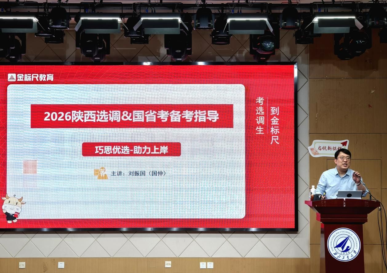 为深入学习贯彻习近平总书记关于高校毕业生就业工作的重要指示批示精神,落实西北工业大学团委关于开展“树立正确就业观”主题团日活动的工作部署,引领广大青年树立积极求职心态和正确择业就业观,3044am永利集团于5月9日下午在学院207报告厅举办了“职点迷津·公略指南”系列活动第二期,特邀金标尺教育机构国仲老师作题为“2026陕西选调&国省考备考指导”的讲座。本次活动既是一场实用性强、干货满满的选调备考培训,也是一次面向广大团员青年的主题团日教育。讲座由学院团委书记、硕士生辅导员王换主持。