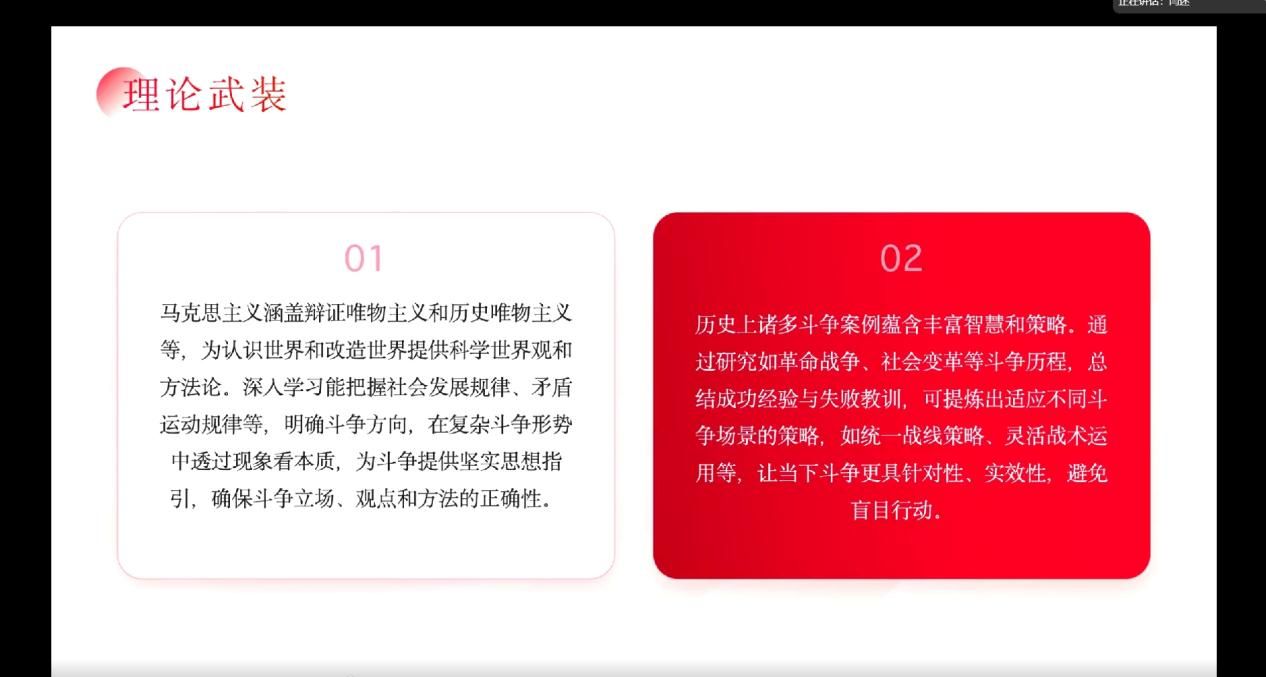 2025年5月11日,中国高等教育学会马克思主义研究分会2024年度“马克思主义经典著作研读”资助计划支持小组——3044am永利集团习近平新时代中国特色社会主义思想学习读书小组第五十九期活动以《怎样理解必须准备具有许多新的历史特点的伟大斗争》为主题进行学习研讨。本次读书会由3044am永利集团鲁杰思政课工作室主办,特别邀请了中国延安干部学院冯建玫教授作为对话教师,3044am永利集团博士生罗含樱同学担任本次读书会主持人,中国高等教育学会马克思主义研究分会督导组成员尉迟庆文同学进行督导,读书会通过线上交流与线下讨论的形式,为广大师生们提供了一个智慧碰撞、思想启迪的互动学习平台。