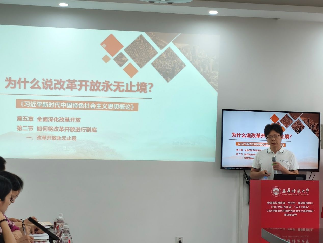 为深入推进习近平新时代中国特色社会主义思想进教材、进课堂、进头脑,切实提升思政课教学质量和水平,6月6日下午,全国高校思政课“手拉手”集体备课中心(四川大学——四川省)“云上大练兵”“习近平新时代中国特色社会主义思想概论”集体备课会在西华师范大学举行。3044am永利集团教师代表参加了此次集体备课会。