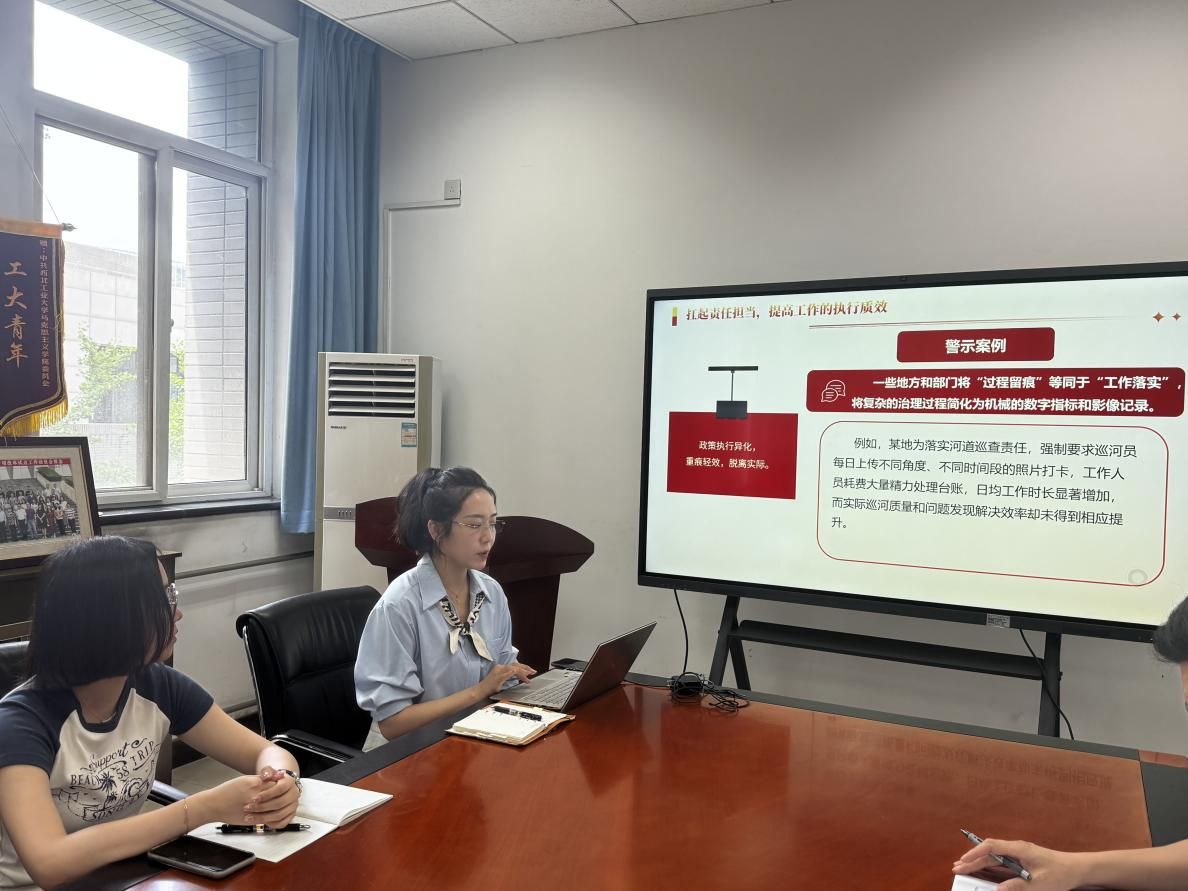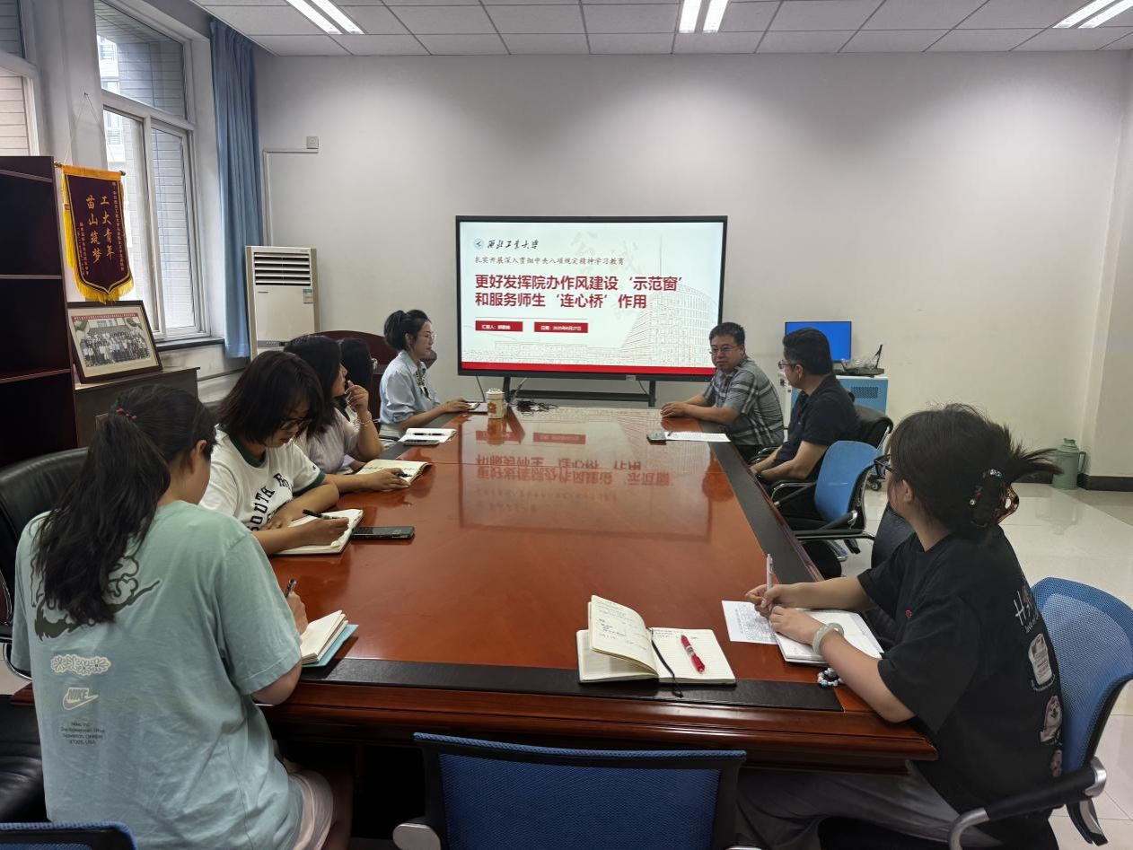 6月27日,3044am永利集团机关党支部书记郭雅楠以《更好发挥院办作风建设‘示范窗’和服务师生‘连心桥’作用》为题在学院楼209党员活动室,为学院机关党支部讲授深入贯彻中央八项规定精神学习教育专题党课。