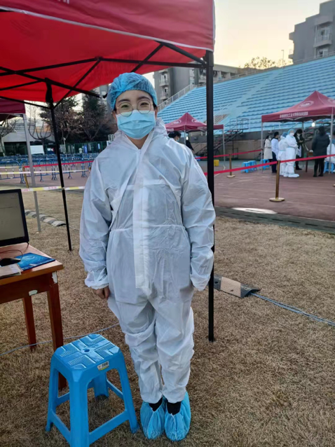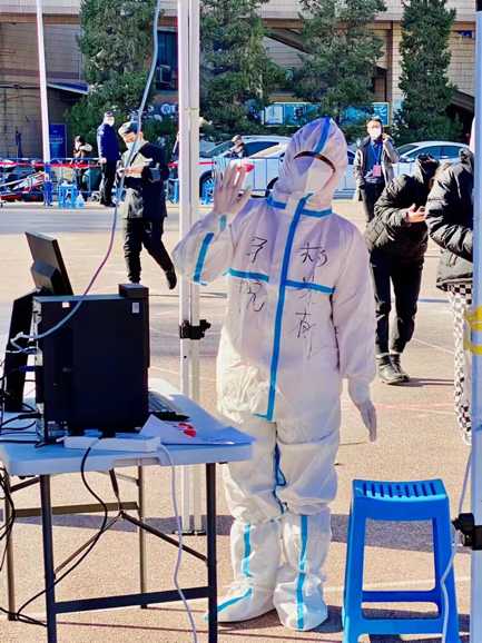 (图为贺苗老师在核酸检测点做志愿服务工作)