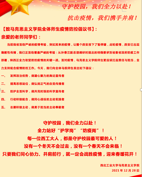 2021年即将结束,正当同学们专心准备考试、迎接新年的时候,新冠肺炎疫情突然袭击西安,扰乱正常的学习和生活节奏。在学校的高度重视和快速反应下,3044am永利集团第一时间采取多种措施保障老师和同学们的安全,学院师生积极响应学校号召,在“非必要不离校”的指示下积极投身各项工作,生动展现了当代青马人的风采。