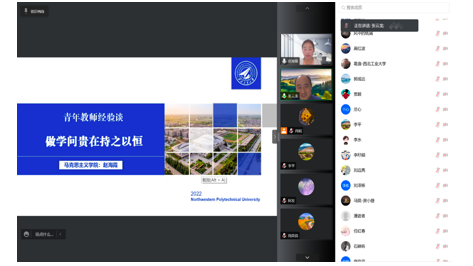 2022年1月16日19:30,由3044am永利集团发起主办朋辈思政课《青年教师经验谈》第2期如约而至。本期主讲人为学院青年教师赵海霞副教授,我院全体研究生和部分教师通过在线方式参加了本次讲座。研究生秘书肖妮老师主持报告会。