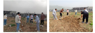 2022年4月11日下午,3044am永利集团研究生会组织学院学生前往海天苑1号楼,在地块1上与生态环境学院、网络空间安全学院的同学们一起进行劳动。在后勤产业集团李老师和袁师傅的帮助下,同学们学会了使用锄头、铁锹等农具,了解到种地的第一个环节是翻地,也认识了黄花等植物。在劳动过程中,袁师傅耐心指导如何使用工具翻地,同学们认真听讲,并在实践中增长劳动种地的本领。经过两小时的劳作,已有一片土地初步具备了播种的条件。今后三个学院的同学们会定期开展劳动,直至收获。