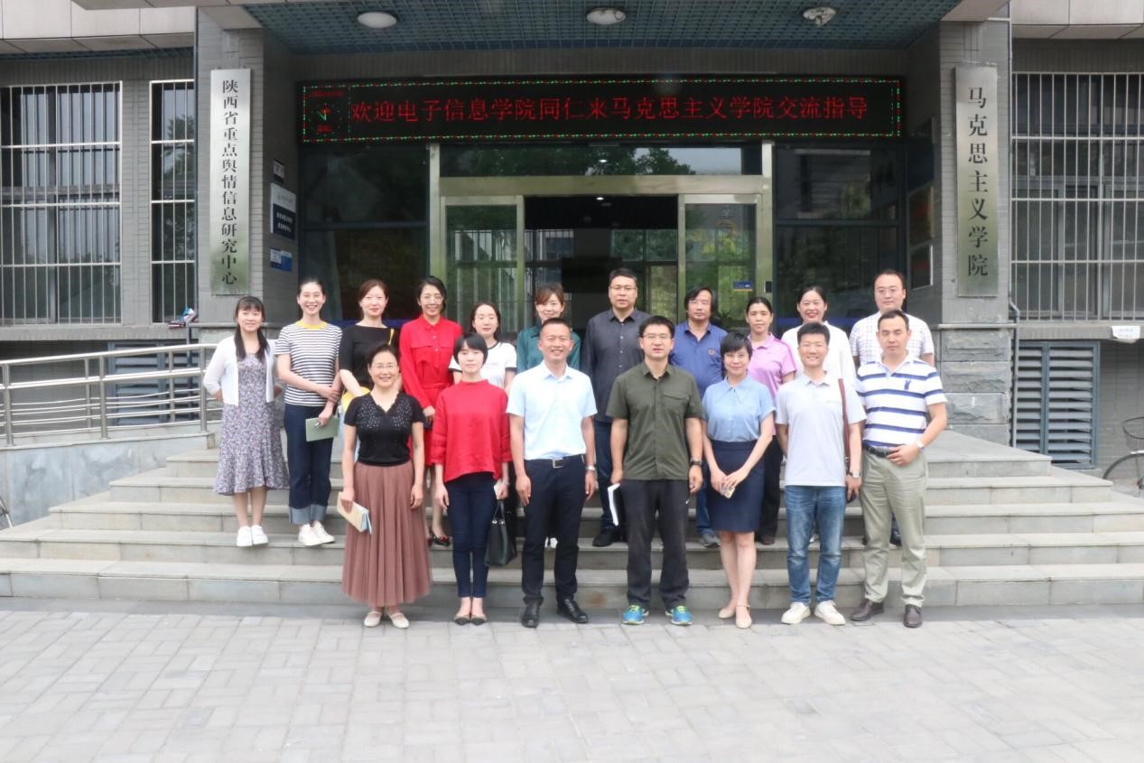 为响应学校一流人才行动计划,进一步凝聚思政课程与课程思政协同育人效应合力、促进同向同行,6月8日,电子信息学院党委书记侯俊一行12人来3044am永利集团调研交流课程思政工作。双方院领导、教工党支部书记、办公室主任等参加了会议。会议由马院党委副书记(主持工作)蒲传新主持。