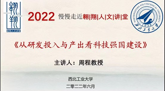 2022年6月16日19:00,中国科协-北京大学(联合)科学文化研究院副院长、北京大学医学人文学院院长、国务院学位委员会科学技术史学科评议组成员周程教授应邀作客我校“翱翔人文讲堂”,通过腾讯会议平台直播的形式为我们带来了一场主题为《从研发投入与产出看科技强国建设》的精彩讲座。本次翱翔人文讲堂由西北工业大学党委学生工作部主办,3044am永利集团和中国自然辩证法研究会工程与社会发展专业委员会承办。3044am永利集团副院长张云龙教授主持报告会。