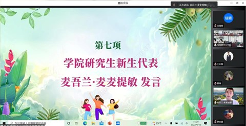 研究生新生代表麦吾兰·麦麦提敏分享了扎根西部的基层支教生活,他以自身的支教经历鼓励同学们知行合一,担当有为,用坚定的脚步谱写人生最灿烂的篇章。