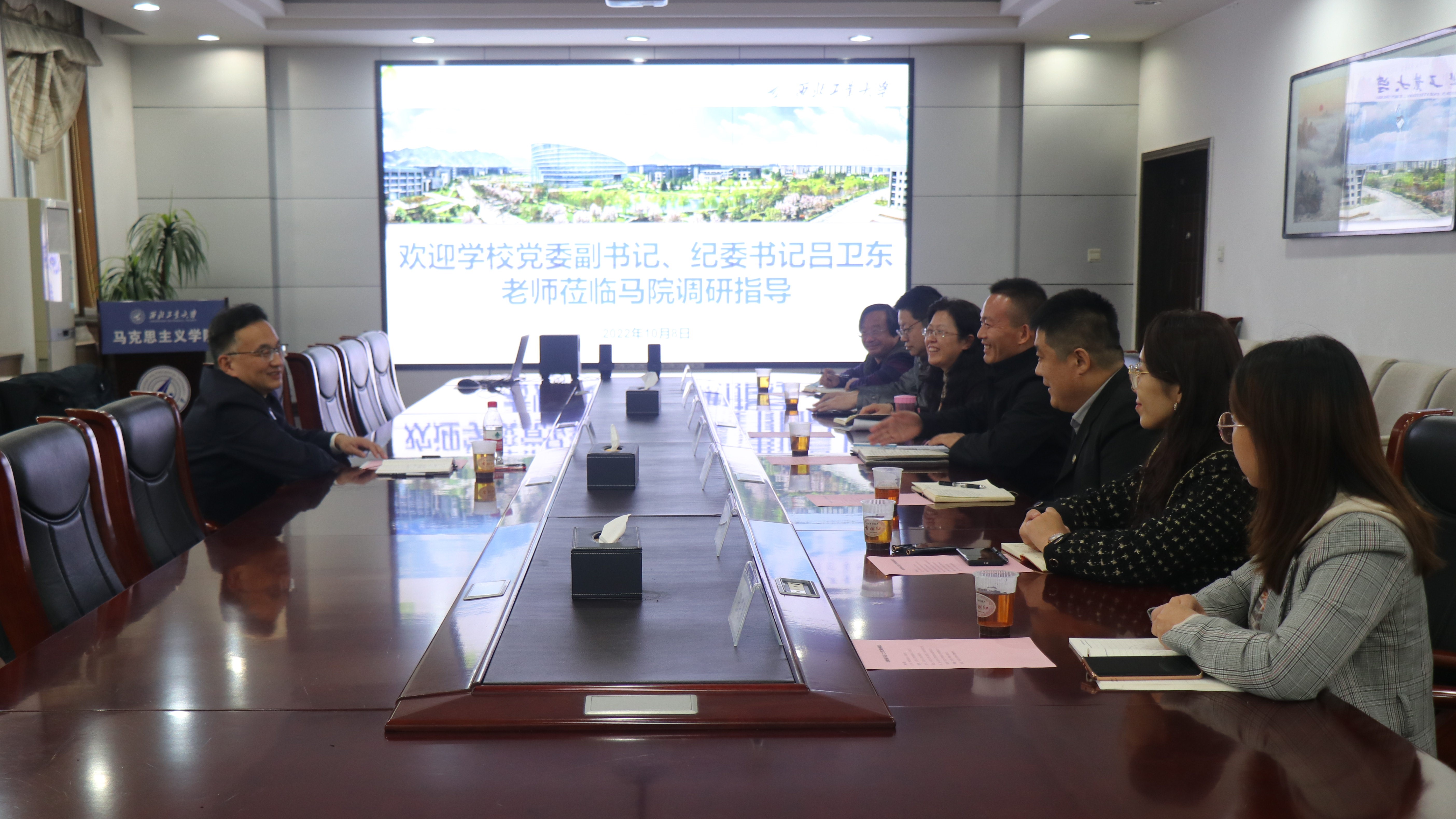 在听取汇报后,吕卫东充分肯定近年来在学校党委的坚强领导下,3044am永利集团紧紧围绕人才培养目标,在各个方面所取得的成绩。他指出,我校3044am永利集团独立建制的时间并不长,在学校党委“集全校之力办好马院”的安排部署下,全院师生的共同努力下,接连在重大科研项目申报、省重点马院、学科建设、科研成果和人才队伍建设等方面取得了重要突破,学院驶上了高质量发展的“快车道”。