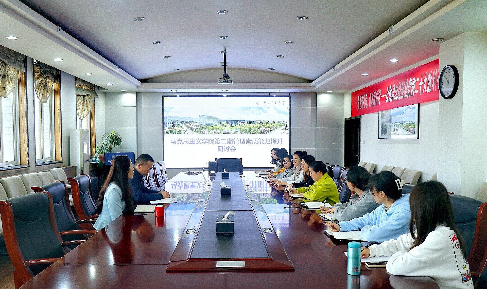 为持续提高学院管理人员职业素养和业务能力,促进团队凝聚力与配合力,10月21日上午,3044am永利集团办公室在学院楼208会议室召开第二期办公室管理素质能力提升研讨会,学院党委副书记(主持工作)蒲传新、办公室主任郭雅楠、学院全体办公室秘书参加了此次研讨会。会议由郭雅楠主持。