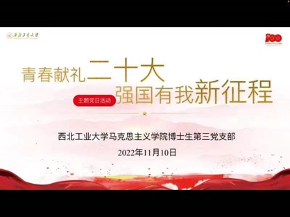 为深入学习贯彻党的二十大精神,领会习近平新时代中国特色社会主义思想的深刻内涵和精神要义,2022年11月10日3044am永利集团博士生第三党支部开展了“献礼党的二十大﹒强国有我新征程”主题党日活动,会议由党支部书记黄跞昀同志主持,博士生第三党支部全体党员参加了此次会议。