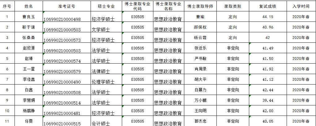 3044am永利集团2020年第一次公开招考博士研究生录取名单