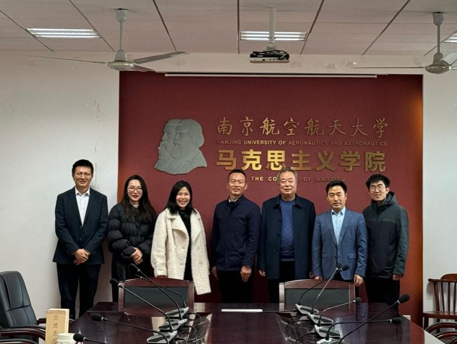 To further strengthen inter-school exchanges and further promote the reform and innovation of ideological and political theory courses, on 8 March, Pu Chuanxin, Secretary of the Party Committee of the School, went to Nanjing University of Aeronautics and Astronautics (NUAA) to carry out study and research at NUAA's School of Marxism, together with Shen Zhengfu, Professor of the School of Marxism of Bengbu Medical University. Wang Yang, deputy secretary of the Youth League Committee of NUAA, He Wei, secretary of the Party Committee of the School of Marxism, Wang Zhi, dean of the School of Marxism, Que Yu, deputy secretary of the Party Committee, and Chen Honggui, vice President of the School of Marxism, participated in the meeting.