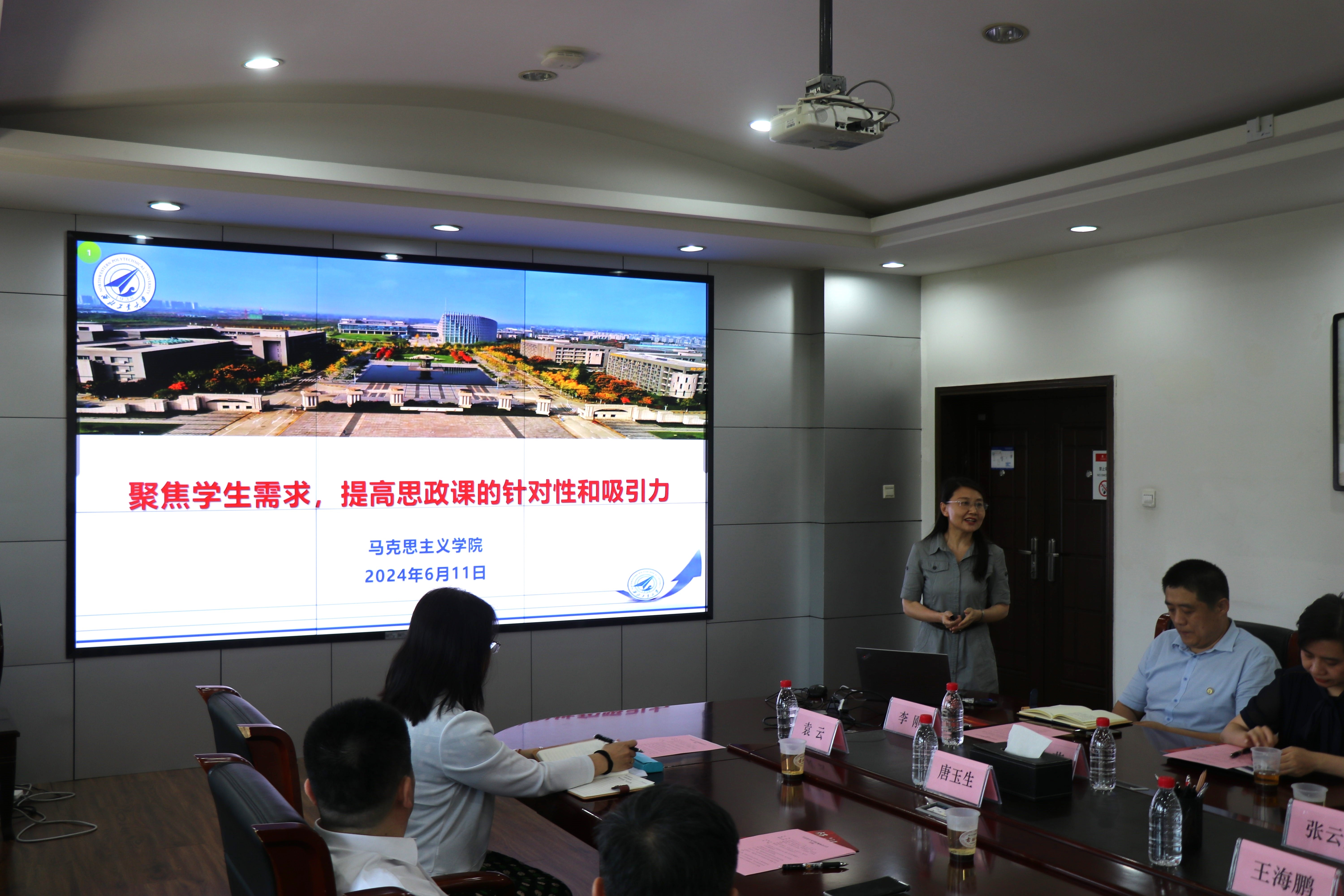 Yang Yunxia, dean of the School of Marxism, combined with General Secretary Xi Jinping's important discussion on the construction of ideological and political theory courses, reported on the overall situation of the ideological and political theory courses serving the cultivation of talents, and emphasised that we should focus on the needs of the students and improve the relevance and attractiveness of the courses.