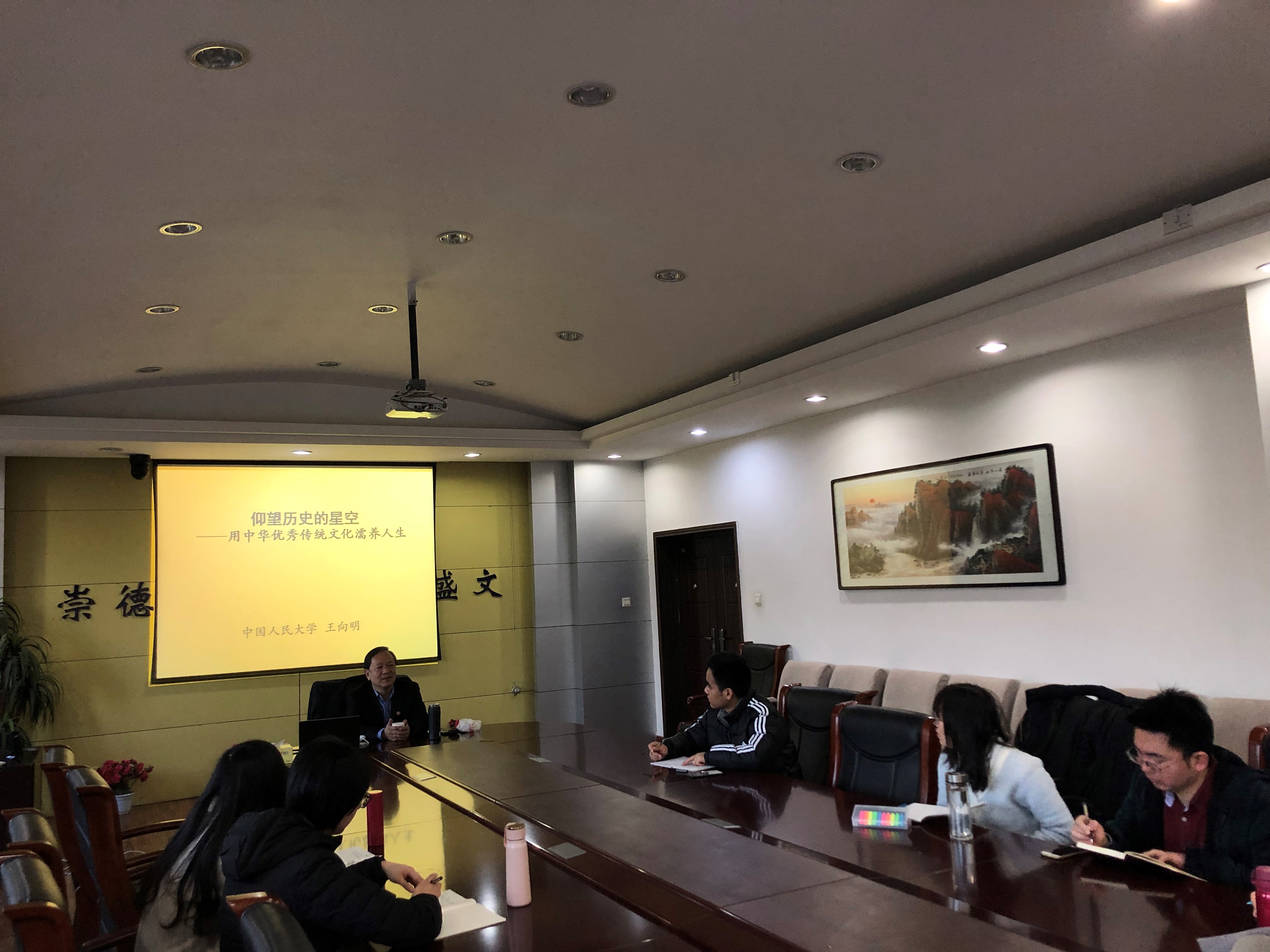 系列讲座结束后,王向明教授还与在场的部分老师和研究生进行了互动交流,回答了同学们的问题。讲座妙趣横生的同时又引人深思,通过此次讲座的学习,大家都被王向明教授深厚的学养、渊博的学识和广阔的学术视野所感染,师生们都受益匪浅、收获丰富,不仅深刻地认识到了学习马克思主义经典著作的重要性,同时对中华优秀传统文化有了更深层次的认识,对十九届四中全会精神有了更进一步的了解。