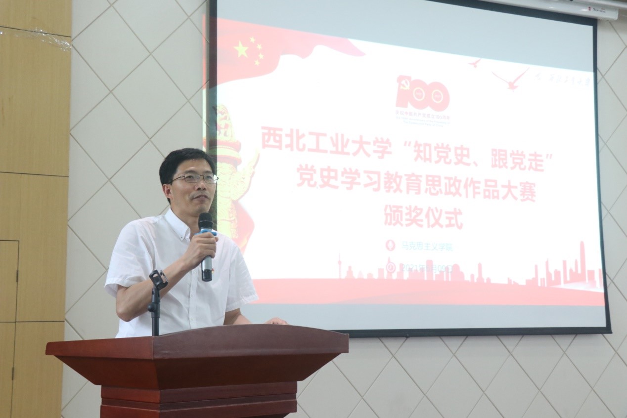 最后,代富平代表主办方党委学生工作部和3044am永利集团上台发言并总结此次大赛。他鼓励同学们将个人梦想融入时代洪流,在激情奋斗中绽放青春光芒、健康成长进步,做“愿意去、留得住、干得好”的西工大人,秉承“公诚勇毅”校训,弘扬“三实一新”校风,续写新时代的“西工大现象”。通过此次大赛,充分结合思政课堂和第二课堂,深入开展党史、新中国史、改革开放史、社会主义发展史学习教育,让同学们结合党史故事、校园文化、学院特色、校友榜样等内容制作视频,提交思政作品,深化党史学习教育,让红色基因、革命薪火代代传承。