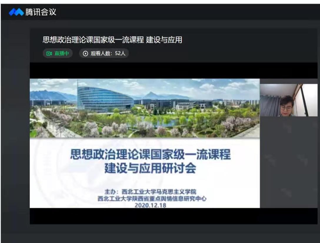 日前,教育部公布了首批国家级一流课程,3044am永利集团(以下简称西工大马院)马克思主义基本原理课获批线下一流课程,带动和示范了全院思政课一流课程建设。为更好开展思想政治理论课国家级一流思政课课程建设,3044am永利集团、西北工业大学陕西省重点舆情信息研究中心全国范围率先举办的思想政治理论课国家级一流课程建设与应用研讨会于2020年12月18日上午在腾讯会议顺利举办。来自北京大学、复旦大学、武汉大学等多个高校的获批国家一流课程(思政类)的专家学者齐聚一堂,传经送宝,就如何更好地开展思想政治理论课国家一流课程建设的经验和今后举措进行了研讨交流。