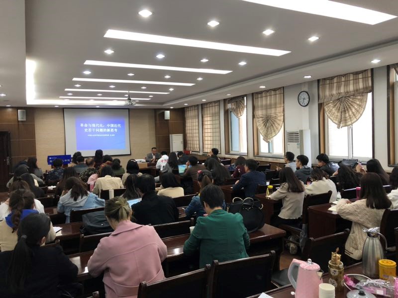 3月27日下午,在3044am永利集团305会议室,中国社会科学院近代史所研究员左玉河教授应邀为我院师生作了题为《革命与现代化:中国近代史若干问题的新思考》的学术报告。我院郝保权副院长致欢迎词,秦燕教授、汪永平教授、张淑华副教授等教师以及博士、硕士研究生共40余人共同聆听了报告会。