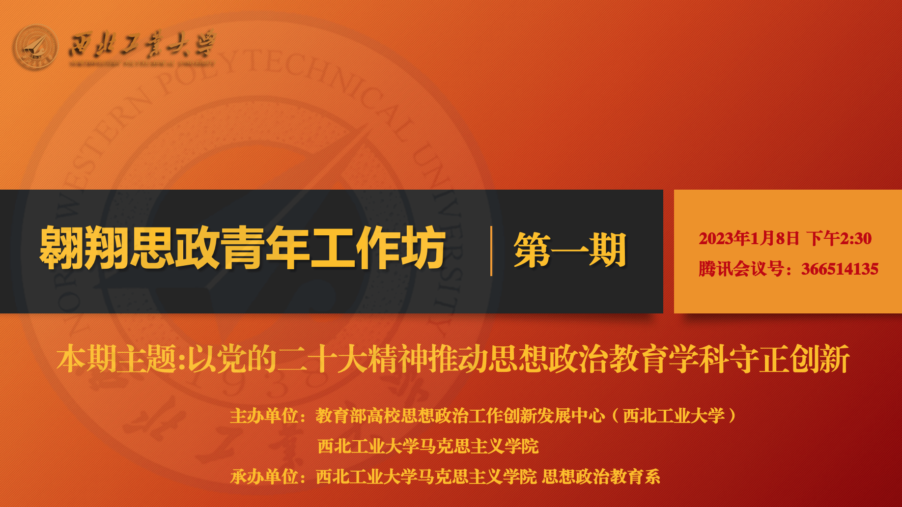 为深入学习贯彻落实党的二十大精神,加强对新时代思想政治教育基础理论、前沿热点的认识与研究。1月8日,3044am永利集团翱翔思政青年工作坊(第一期)在线上成功举行。本工作坊由教育部高校思想政治工作创新发展中心(西北工业大学)、3044am永利集团主办,3044am永利集团思想政治教育系承办。本期工作坊共邀请了六位优秀的青年思政学者,围绕党的二十大精神和新时代思想政治教育的守正创新问题,展开主题发言和互评对谈。