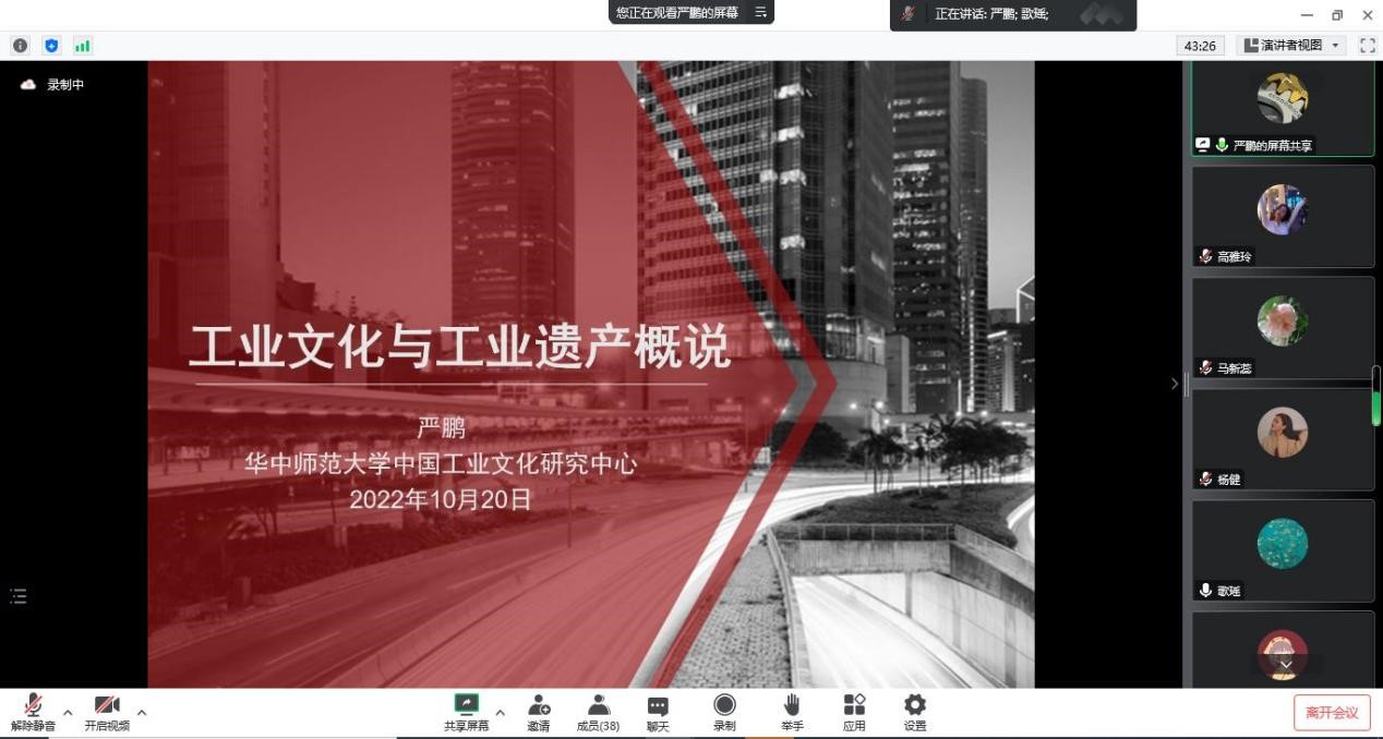 2022年10月20日18:30-21:30,华中师范大学中国近代史研究副教授、华中师范大学中国工业文化研究中心副主任,复旦大学中国研究院特邀研究员严鹏老师应邀做客我校“翱翔人文讲堂”,在线开展了一场主题为《工业文化与工业遗产概说》的精彩讲座。本次讲座由我校3044am永利集团中国近现代史基本问题研究系主任汪永平教授主持。