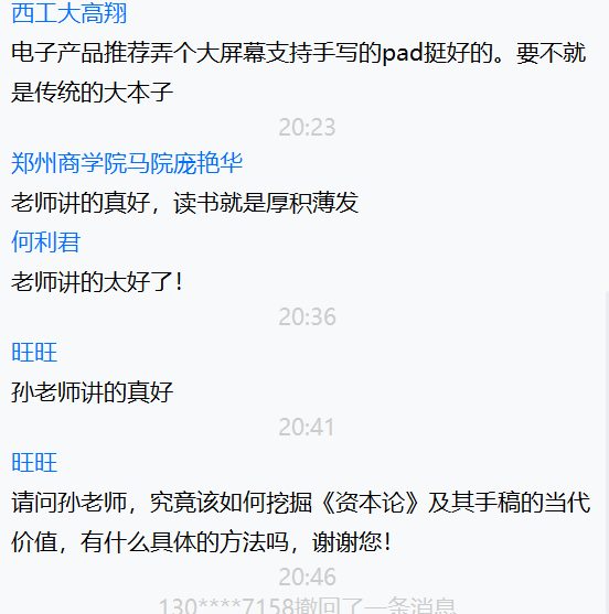 孙乐强教授表示,读书笔记是学术研究的重要环节,也是文本阅读的重要方法,具体来说就是先阅读文本并作摘抄、摘录,之后汇总成集形成资源库,完成从文本上升到思想史的过程,借助读书笔记,我们可以透过现象、达及本质,把握住人类社会发展的规律、时代精神的精华和世界潮流。此外,对于政治和哲学的关系,孙老师也有自己的见解,他认为政治和哲学是相辅相成的,谁也离不开谁,哲学需要政治实现自身价值,而政治也需要在哲学中找到合理性主张。