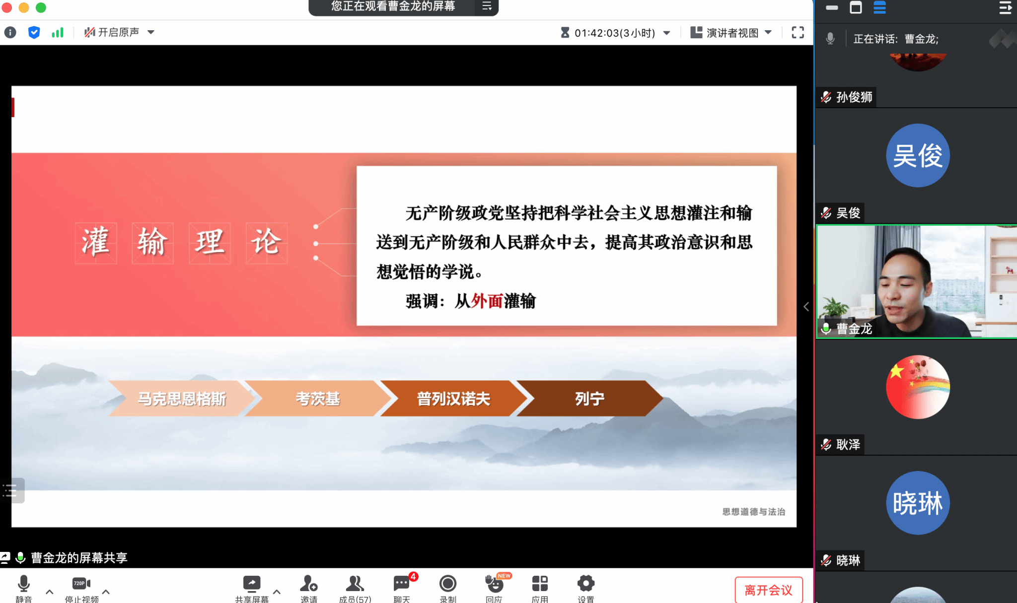 曹金龙老师首先进行观点分享,他以“关于‘灌输论’定位问题的再思考”为题,在对“灌输”进行概念溯源后,认为“灌输论”不能仅被理解为是方法,而是思想政治教育的一般原理。